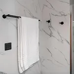 Ezek csempe padlózattal vannak ellátva. Az apartmanban külön WC, mosdó és zuhanyzó szolgálja a kényelmét. A fürdőszobában hajszárító, vendég piperecikkek és törölközők is biztosított.